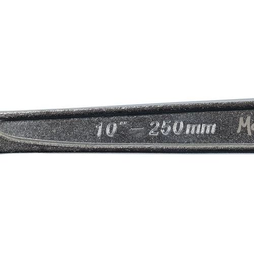 Clé à molette en acier chrome vanadium avec tête fine inclinée à 15°, crémaillère du mors non débordante. Serrage universel des écrous hors normes ou endommagés. Tête finition brillante. Garantie client : 10 ans