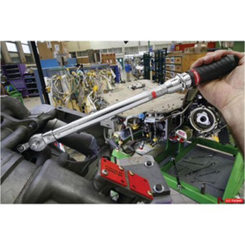 Livré en boîte plastique avec cliquet, poignée pivot et certificat d'étalonnage ISO 6789.