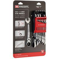 Jeu de 12 clés mixtes à cliquet avec support - Wiha