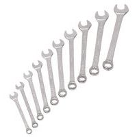 Jeu clés mixtes avec barre magnétique. La barre se fixe solidement aux surfaces métalliques grâce à un aimant puissent. La barre peut aussi être vissée au mur. Les attaches de la barre offrent un maintien parfait des outils.