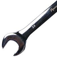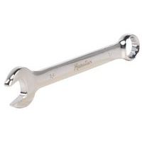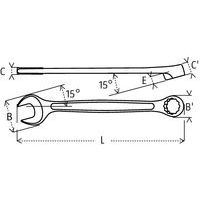 Combinaison unique au monde de mécanisme de cliquet mixte en version longue. Pour les vis à tête hexagonale et écrous hexagonaux. Le levier long permet la transmission de forces élevées. La version longue facilite aussi l'accès aux vissages profondément encastrés. Avec fonction de retenue, grâce à la plaque en métal de la fourche, qui diminue le risque de perdre les vis ou les écrous. La plaque en métal interchangeable de la fourche, munie de dents extra-dures, sécurise les vis et les écrous et diminue le risque de dérapage. La butée intégrée empêche le dérapage vertical hors de la tête de vis et permet l'application de couples élevés. La forme dodécagonale assure un ajustement parfait avec la vis ou l'écrou, ce qui diminue le risque de dérapage. Un angle de reprise de seulement 30°, côté fourche, évite de perdre du temps à tourner la clé pendant le vissage. Mécanisme de cliquet, côté œil, avec denture exceptionnellement fine de 80 dents pour plus de flexibilité dans les espaces de mon