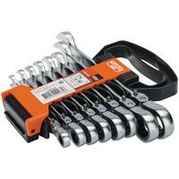 Jeu de clés mixtes à cliquet et à fourche 12 pièces dans un étui. Facilite votre travail avec étui pratique pour un rangement clair et un retrait facile. Augmente votre efficacité grâce à une meilleure accessibilité dans les endroits étroits grâce à la fourche coudée à 15°. Ideal pour les travaux d'installation et de montage. Convient particulièrement pour les travaux aux endroits étroits. Vissage sans déplacement de l’outil grâce à une denture fine de 72 dents. Parfait pour les espaces restreints grâce à sa clé mixte à petit angle. Rangement facile. Visser et dévisser les vis et les écrous six pans fermement serrés demande beaucoup de force. Avec les clés à cliquet à anneau et à fourche de Wiha, l'utilisateur peut ouvrir n'importe quel raccord à vis par simple action de levier. L'extrémité avec la fourche est également parfaitement adaptée au contre-blocage des vis et écrous. Avec une fourche coudée à 15°, le côté à fourche convient parfaitement pour les travaux dans les endroits étro