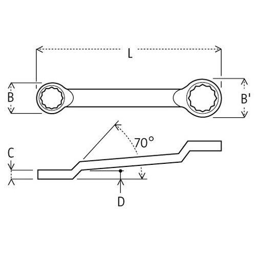 Clé polygonale contrecoudé série 55 à l'unité - Capacités 6x7 à 13x17 mm