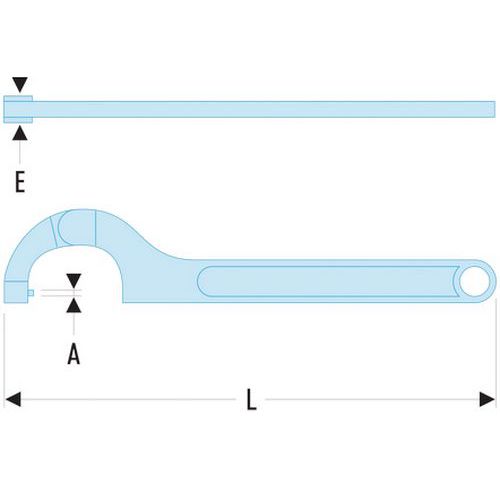 - Mêmes conception et avantages que la clé 125A mais équipées d'ergots amovibles pour la manoeuvre des écrous à trous.