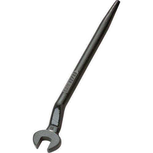 - Clé conçue pour le montage des charpentes métalliques : manche en forme de broche servant à positionner les trous d'assemblage.
