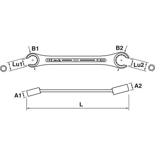 - tête œil moins encombrante qu'une clé à fourche permettant ainsi une meilleure accessibilité et une meilleure reprise.