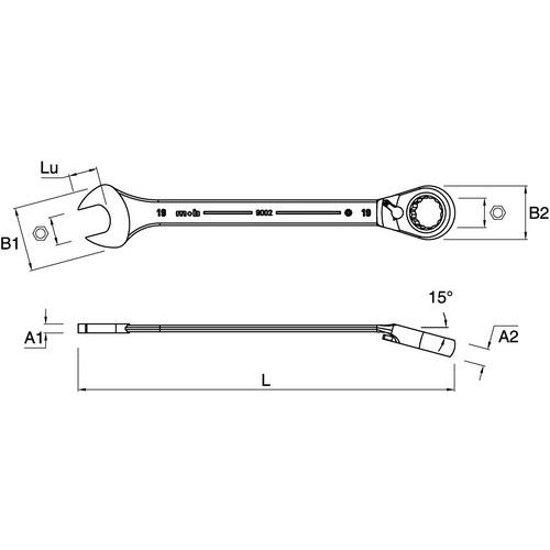 Clés mixtes à cliquet, Nb de clés: 1, Cliquet réversible: non, Longueur: 235 mm, Capacité (Dimensions): 18 mm