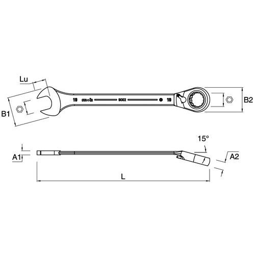 Clés mixtes à cliquet, Nb de clés: 1, Cliquet réversible: non, Longueur: 290 mm, Capacité (Dimensions): 22 mm