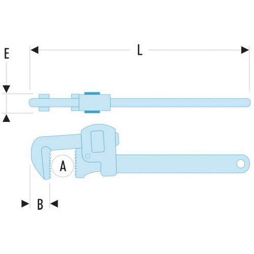 - Clé « Stillson » avec trou dans le manche : accrochage directe par mousqueton.