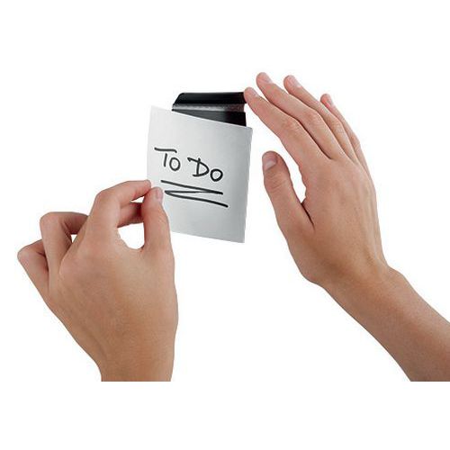 Clip à fixation adhésive, facile à poser. Livré par 5. Pose en quelques secondes : - Retirer le film protecteur - Coller le clip - Insérer votre note