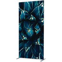 Cloison décorative en tissu Cactus. Ensemble complet de Zipper-Banner Slim avec impression double-face. Impression standard. Visuel imprimé par sublimation. Maillage souple 100 % Polyester. Résistance au feu de classe B1. Parfait pour une utilisation comme cloison dans les restaurants, les bureaux ou les espaces publics.