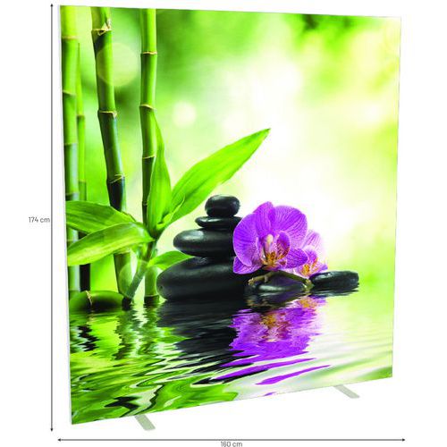 Panneau en toile classé au feu M1, démontable et lavable à 30° Equipée de 2 pieds en acier laqué blanc Montage facile et rapide de la toile Poids 9,5 kg Panneau en toile classé au feu M1