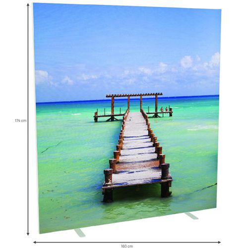 Panneau en toile classé au feu M1, démontable et lavable à 30° Equipée de 2 pieds en acier laqué blanc Montage facile et rapide de la toile Poids 9,5 kg Panneau en toile classé au feu M1