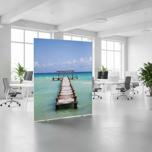 Panneau en toile classé au feu M1, démontable et lavable à 30° Equipée de 2 pieds en acier laqué blanc Montage facile et rapide de la toile Poids 9,5 kg Panneau en toile classé au feu M1 Fabriqué en UE Garantie client : 10 ans Service installation/montage : Option montage