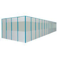 Monobloc, amovible et interchangeable. Assemblage des panneaux par raccords rapides à visser sur les montants (fournies). Fixation des cloisons au sol par vis et chevilles (fournies). Fabriqué en France Secteur entrepôt Garantie client : 3 ans