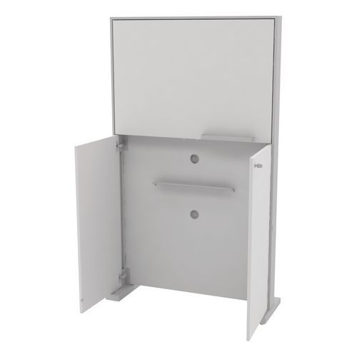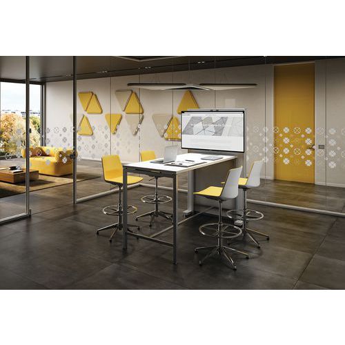 - Juxtaposé à des bureaux ou tables de réunion basse ou haute (hauteur maxi 120 cm. Sans accrochage fixe il reste indépendant de la table
