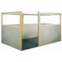 Isolation phonique par laine minérale. Étanchéité assurée grâce à ses plinthes coulissantes. Assemblage des panneaux par boulonnage.