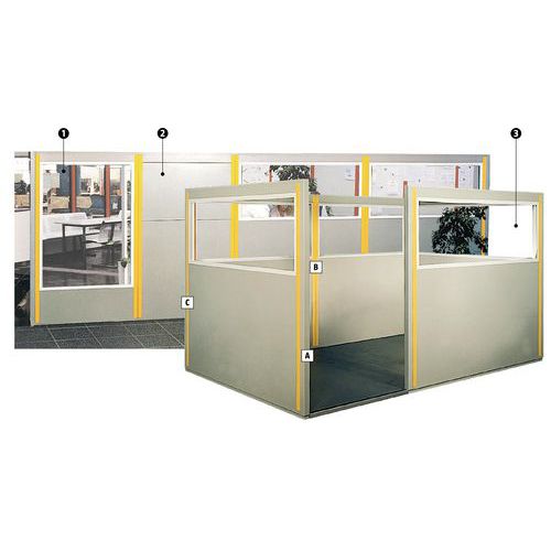 Isolation phonique par laine minérale. Étanchéité assurée grâce à ses plinthes coulissantes. Assemblage des panneaux par boulonnage.