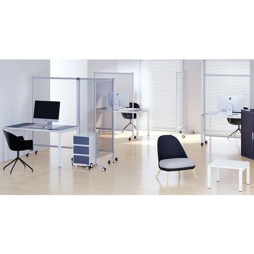 Cloison de protection mobile avec panneau transparent.