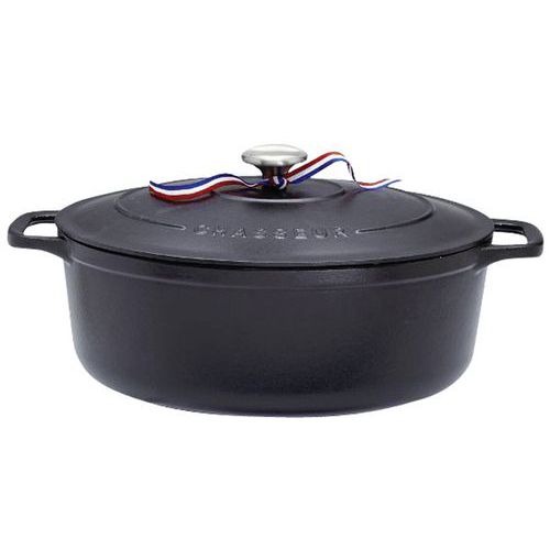 | Intitulé du produit | Cocotte en fonte ovale 27 cm Noire Sublime Chasseur, Ø: 270 mm, Coloris: Noir, Matériau: Fonte |