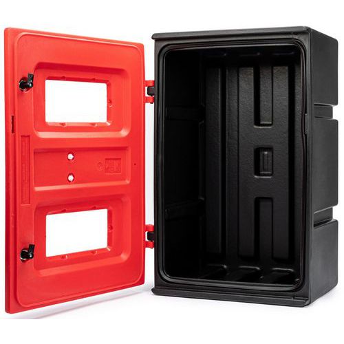| Intitulé du produit | Coffre extincteur, Matériau: Polyéthylène, Coloris: Rouge/noir, Hauteur hors tout: 850 mm |