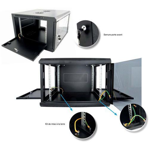 | Intitulé du produit | Coffret 4 montants porte avant vitrée noir monté - 19 - 18U - BlueLan |