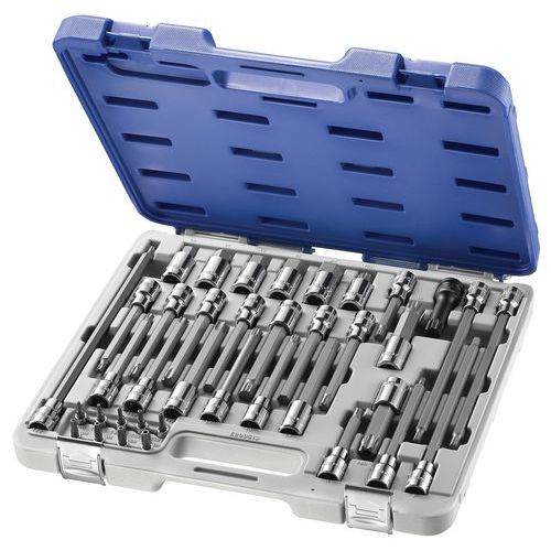 | Intitulé du produit | Coffret de douilles tournevis 6 pans, Torx®, XZN, Nb de pièces: 38, Réf. Fabricant: E200513 |
