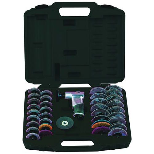 | Intitulé du produit | Coffret ponceuse revolver 50-75 mm, Pression de travail: 6.3 bar, Réf. Fabricant: 1372-90, Poids: 800 g |