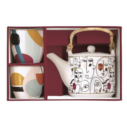 | Intitulé du produit | Coffret Théière + 2 gobelets Modernism-Coffee Mania Easylife, Capacité: 0.6 L, Coloris: Multicolore |