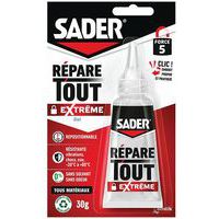 - La colle Répare Tout Extrême de Sader est idéale pour réparer facilement et durablement l'ensemble de vo objets, avec une résistance aux conditions extrêmes. Son embout innovant rendra vos collages plus faciles.