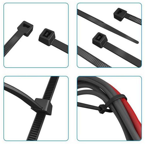 Colliers de fixation noir en nylon, Matériau: Nylon, Largeur: 4.8 mm, Longueurs: 200 mm, Coloris: Noir