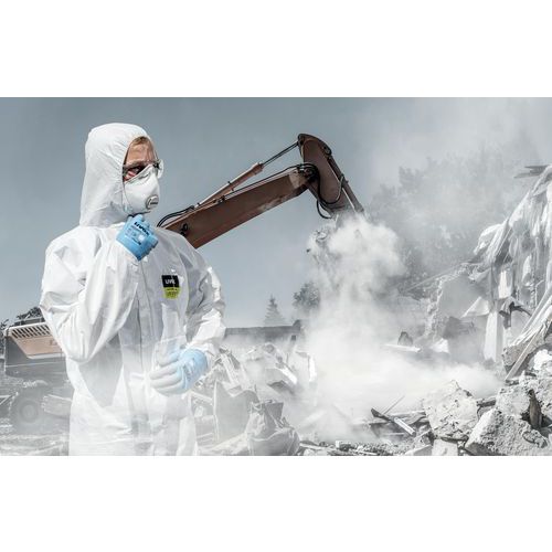 La combinaison à usage unique Classic Light Uvex en blanc (type 5/6) offre une protection contre les particules fines et les produits chimiques légers.
