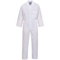 Combinaison de travail Standard blanc avec 5 poches. Fermeture centrale à pressions. Ceinture dos élastiquée.