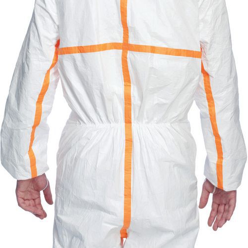Combinaison de travail à capuche et passe pouce empêchant la manche de remonter.