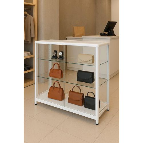 | Intitulé du produit | Comptoir exposition, Socle coloris: Blanc, Hauteur: 100 cm, Largeur: 100 cm, Profondeur: 50 cm |