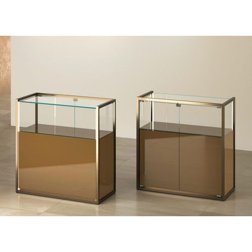 Comptoir exposition avec rangement, Socle coloris: Bronze, Hauteur: 95 cm, Largeur: 95 cm, Profondeur: 45 cm