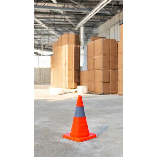 - Grâce à sa bande réfléchissante haute luminosité, le cône de signalisation est visible de loin.