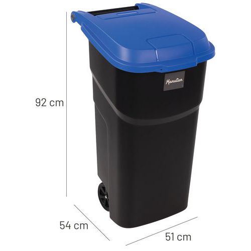 | Intitulé du produit | Conteneur avec couvercle bleu 100L – Manutan Expert, Capacité: 100 L, Ouverture: Frontale |