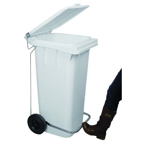 | Intitulé du produit | Conteneur mobile à pédale EN840, Capacité: 120 L, Ouverture: À pédale, Matériau: Plastique, Coloris: Blanc |