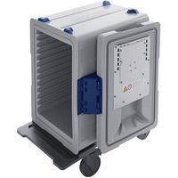 BLANCOTHERM 620 KBRUH-F avec goulotte à condensat Conteneur de transport de repas en polypropylène, chauffé par air pulsé, avec régulateur de température numérique pour la régulation au degré près de la température dans l’espace intérieur de +40 °C à +85 °C, mobile, avec roues conformes DIN 18867-8 en plastique, 4 roues pivotantes, dont 2 avec frein, avec porte battante Capacité : 3x GN 1/1-150 ou leurs subdivisions Nombre de glissières : 12 paires de glissières Espacement des glissières : 39 mm