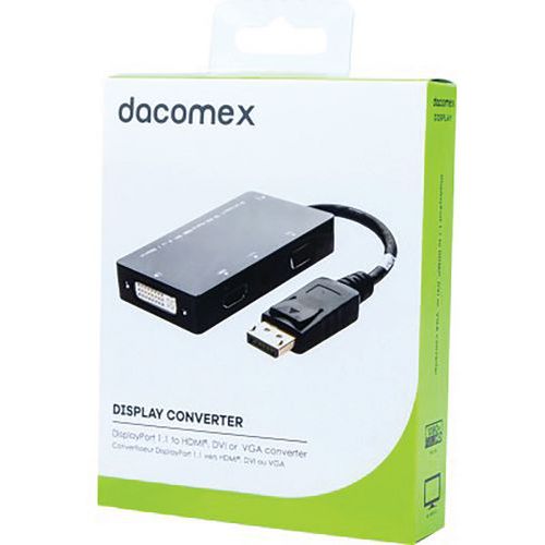 | Intitulé du produit | Convertisseur DisplayPort 1.1 vers HDMI, DVI ou VGA DACOMEX, Câble longueur: 8 cm, Coloris: Noir |