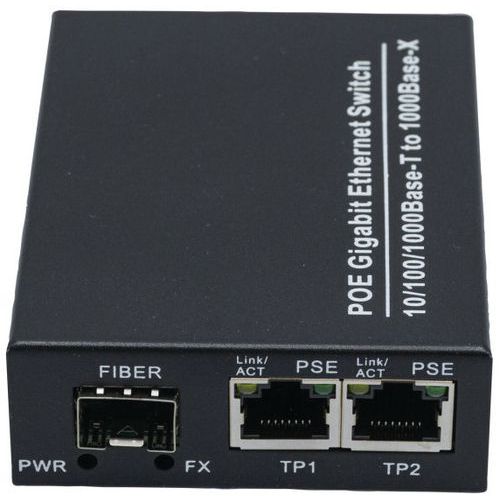 | Intitulé du produit | Convertisseur fibre optique à 2 ports RJ45 injecteur PoE+, Coloris: Noir, Nb de ports: 2 |