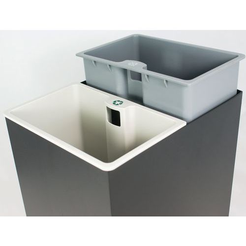 | Intitulé du produit | Corbeille de deux bacs rectangulaires de tri sélectif , Capacité: 14 L, Ouverture: Sans couvercle |