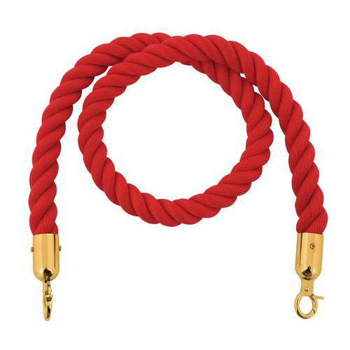 - Cordon en chanvre peigné avec crochets chromés ou cuivrés aux extrémités.