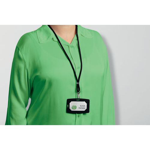 Avec fermeture sécurisée qui s’ouvre en cas de traction trop forte. Tissé rond avec mousqueton. Idéal pour les badges nominatifs ou porte-cartes d’identité avec encoche pour clip, ou comme porte-clés. Longueur du tour de cou : 46 cm. Fabriqué avec un matériau durable.