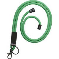 - Lanière tour de cou textile avec fermeture de sécurité et accessoires noirs.
