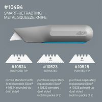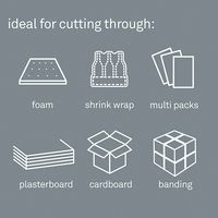 - La lame utilitaire d'entrée de gamme est arrondie à son extrémité pour permettre des coupes sans effort sur la plupart des matériaux.
