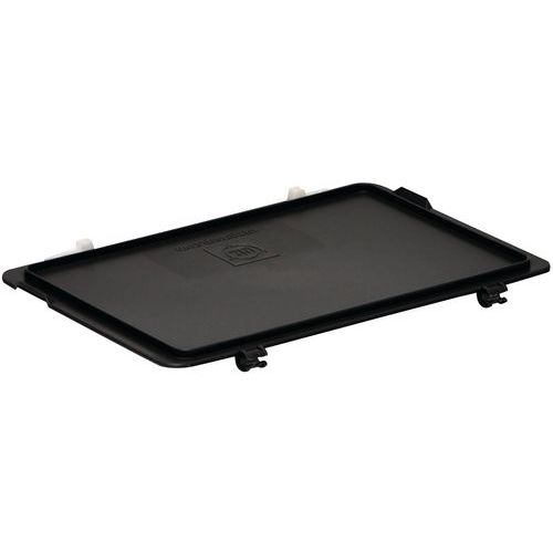Couvercle de gerbage Norme Europe en matière conductrice disponible dans différentes dimensions en coloris noir. Certains couvercles disposent de deux charnières solidaires sur un grand côté (3-215Z-1-11 EL,3-214Z-1-11 EL, 3-213Z-1-11 EL) D'autre part il est également possible de rajouter des fermetures à ressort pour ces mêmes références.