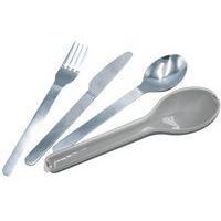 - Le kit couverts est composé d'un couteau, d'une fourchette et d'une cuillère en inox présentés dans un étui de transport refermable en plastique.