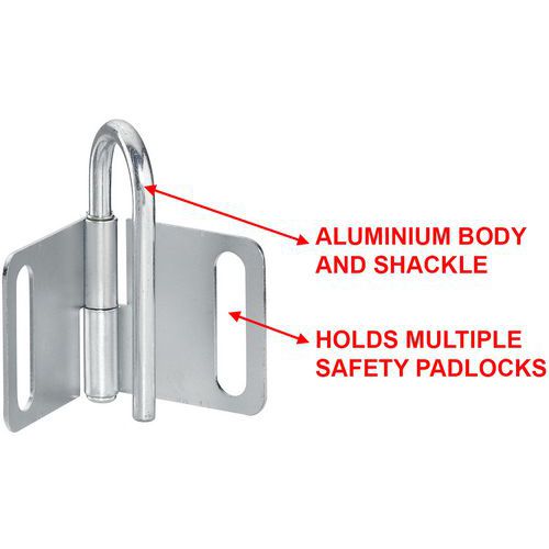 Le crochet de consignation en acier résistant à l'effet de levier Master Lock nº 418 présente un diamètre intérieur de mâchoire de 25 mm et peut accueillir jusqu'à quatre cadenas.